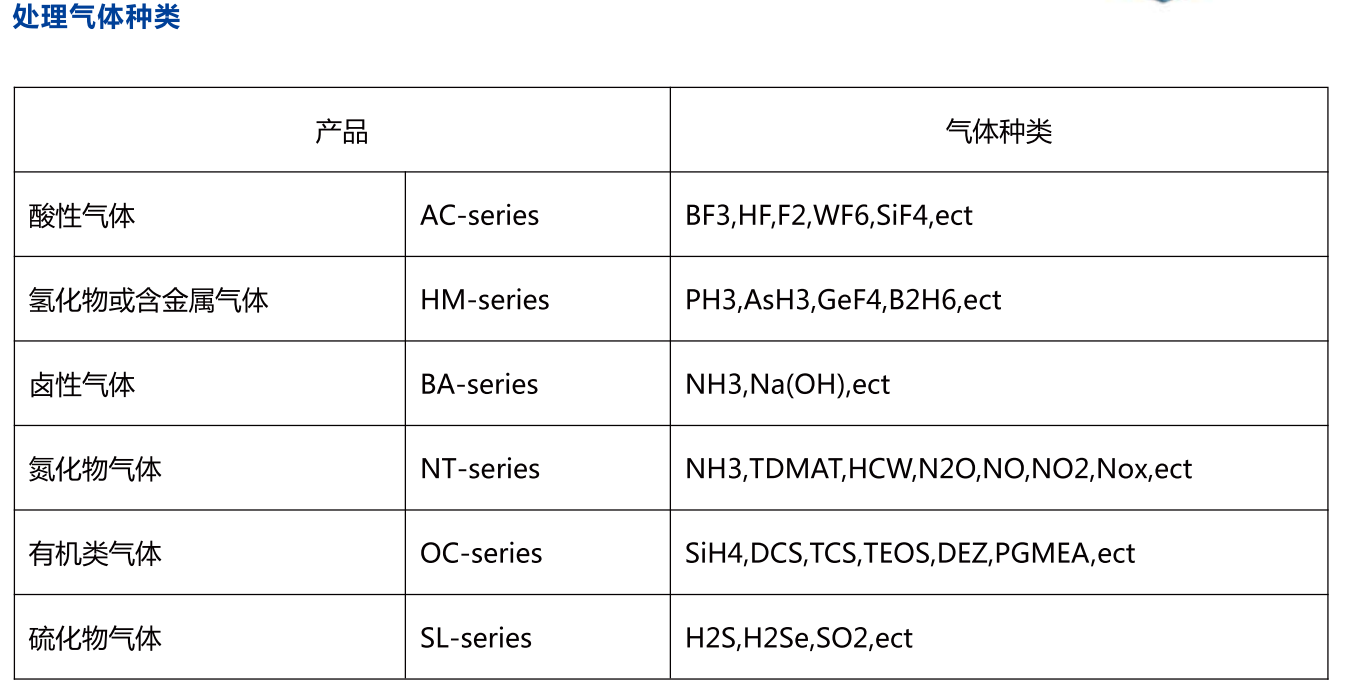 WFS-100F吸附式local scrubber 尾氣處理設(shè)備可處理氣體種類包括半導(dǎo)體、液晶以及太陽能等行業(yè)中蝕刻制程與化學(xué)氣相沉積制程中使用的特氣,主要包括SiH4、SiH2Cl2、PH3、B2H6、TEOS、H2、CO、NF3、SF6、C2F6、WF6、NH3、N2O等。