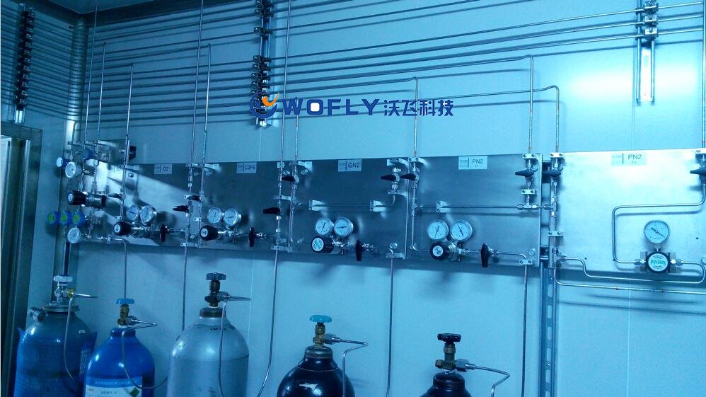 主要由氣源切換系統(tǒng)(一級(jí)減壓系統(tǒng))、管道及連接件系統(tǒng)、二級(jí)調(diào)壓系統(tǒng)、氣體過濾純化系統(tǒng)、氣體報(bào)警系統(tǒng)、壓力表、球閥等組成。